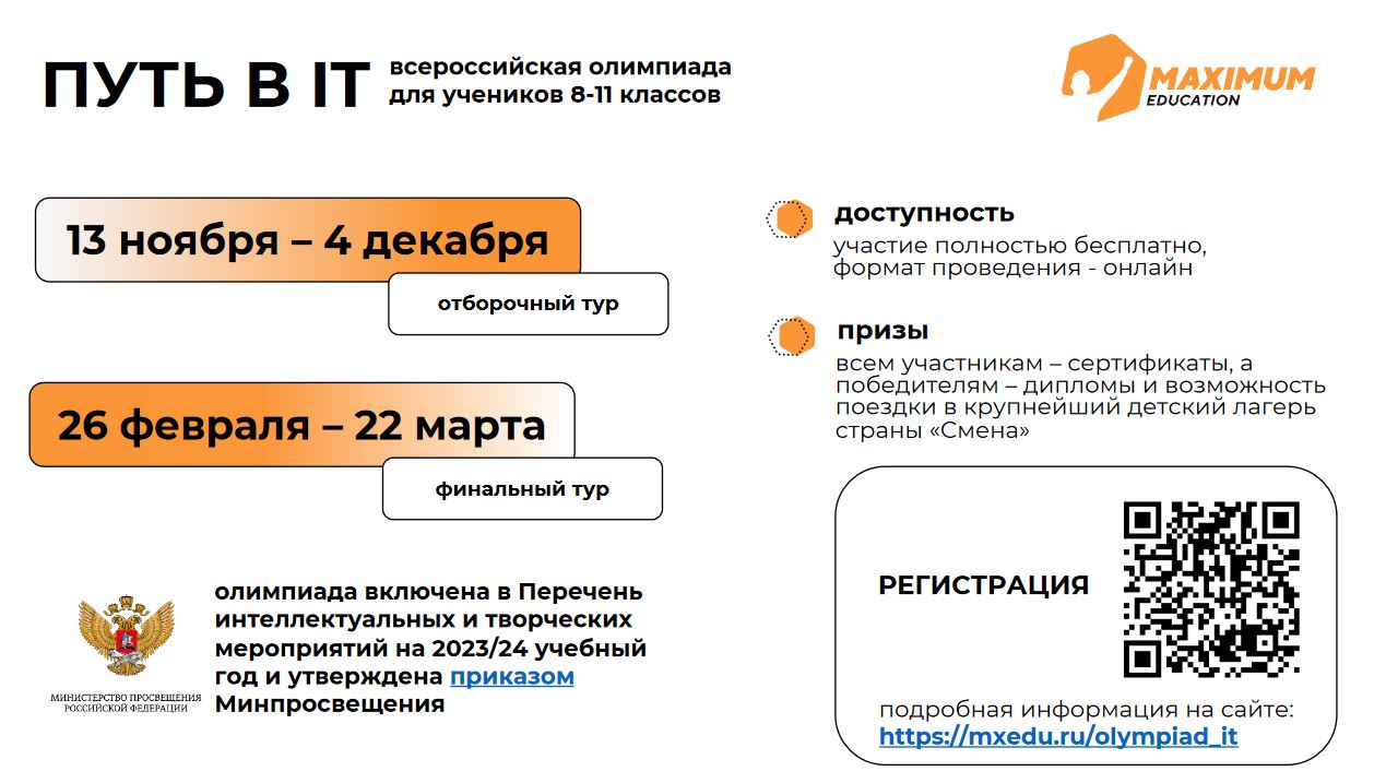 Регистрация на участие и подробная информация об олимпиаде по ссылке: https://maximumtest.ru/promo/road-in-it?utm_source=gr..