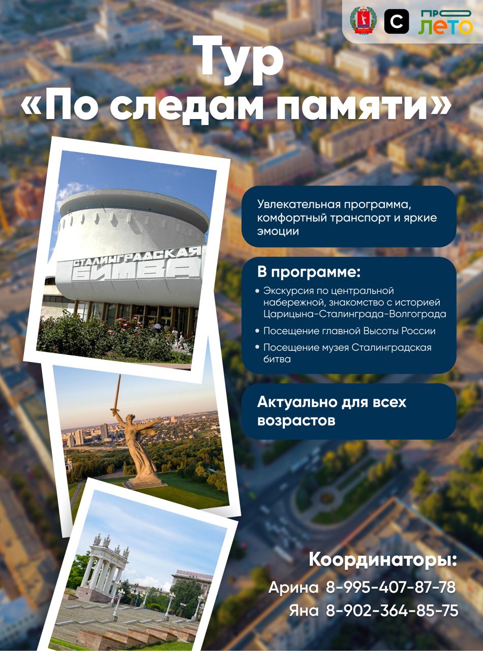 1. Программа туристического просветительского тура «По следам памяти», посвященного 80-летию Победы в Сталинградской битве (для учащихся общеобразовательных организаций от 12 лет, студентов организаций среднего профессионального и высшего образования).