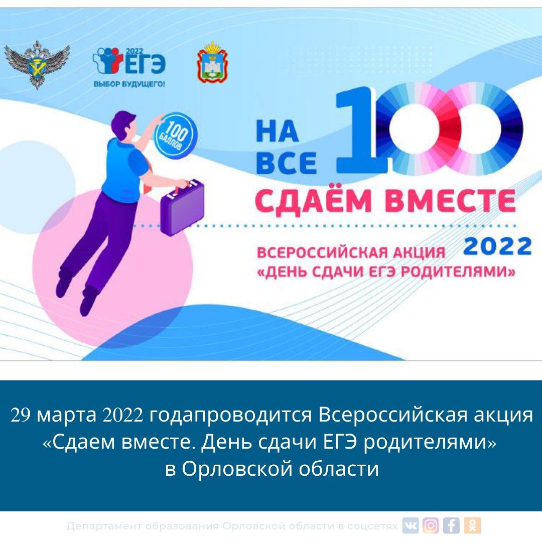 Приглашаем выпускников и их родителей принять участие в Акции, которая будет проходить 29 марта 2022 года в 15.00 в бюджетном учреждении Орловской области «Региональный центр оценки качества образования».