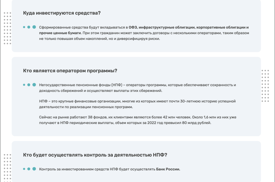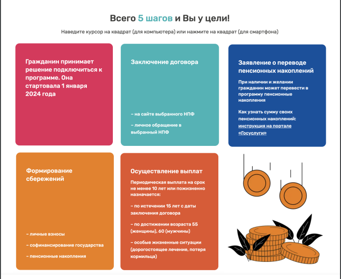 Подробнее о новом долгосрочном сберегательном продукте смотрите в карточках или на портале : https://xn--80apaohbc3aw9e.xn--p1ai/programma-dolgosrochnyh-sberezhenij-new/.