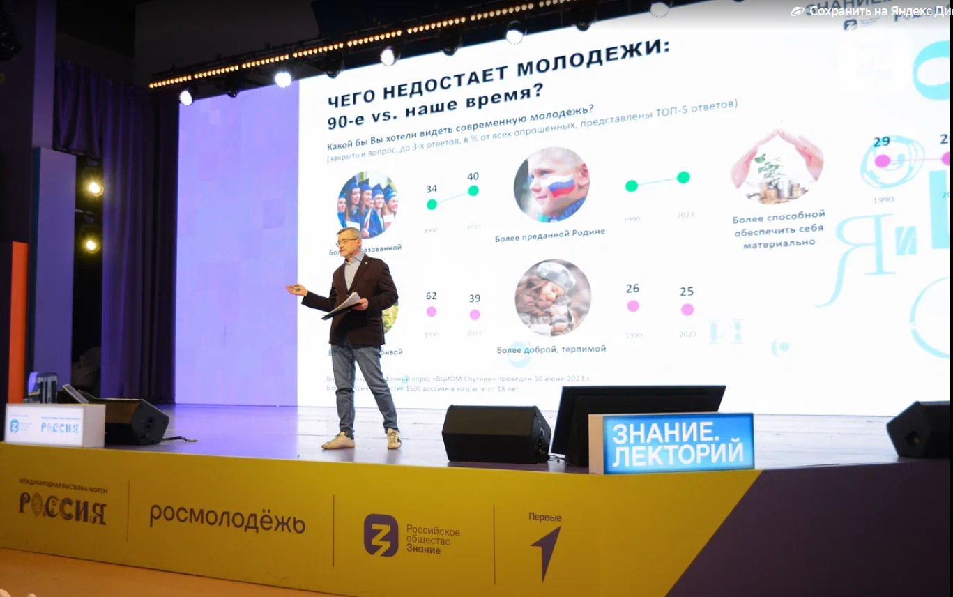 Молодежь в цифрах: гендиректор ВЦИОМ Валерий Фёдоров рассказал о взглядах и предпочтениях нового поколения в лектории Общества «Знание» на Выставке “Россия”